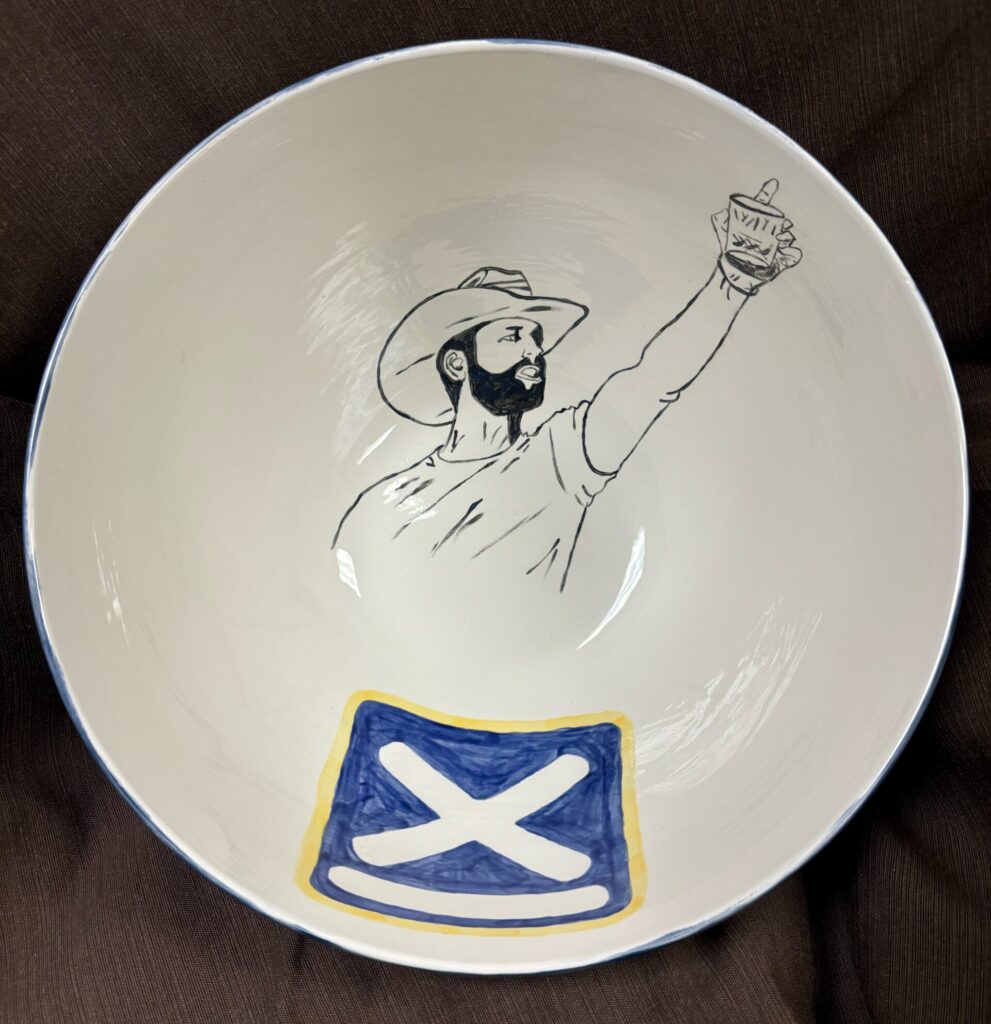 Dustin Lynch – is a country music singer and songwriter known for his deep voice and captivating lyrics like Small Town Boy, Good Girl and Ridin’ Roads. He has won many awards including ACM New Artist of The Year, CMT Male Video of the Year, iHeart Radio Country Song of the Year. He was inducted into the Grand Old Opry in 2018. His ability to blend traditional country with modern influences has earned him a broad and dedicated fan base. His bowl features an image of him onstage on his tour.
