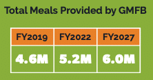 GMFB’s five-year vision is to exceed pandemic-level food distribution levels and expand our output in alignment with service area growth while increasing nutritional content and distribution reach/equity.